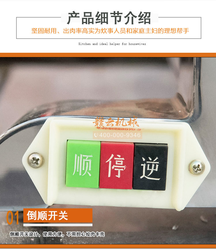 贛云牌12型臺式電動強力絞切機,絞肉切肉灌腸一體機,采用1.0kw大功率純銅電機作為動力,絞肉切肉一體,整機設計平衡性能良好,絞肉切肉速度快,絞龍采用不銹鋼材質(zhì)。價格是2080元 (不含稅)